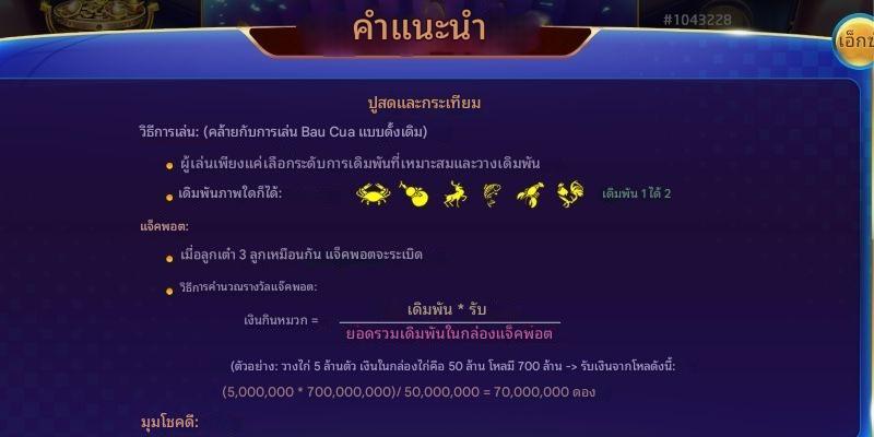 • เพิ่มเงินเดิมพันเมื่อแพ้: ทุกครั้งที่คุณแพ้เกม Bau Cua คุณจะเพิ่มเงินเดิมพันของคุณหนึ่งหน่วย (เช่น จาก 1 หน่วยเป็น 2 หน่วย)